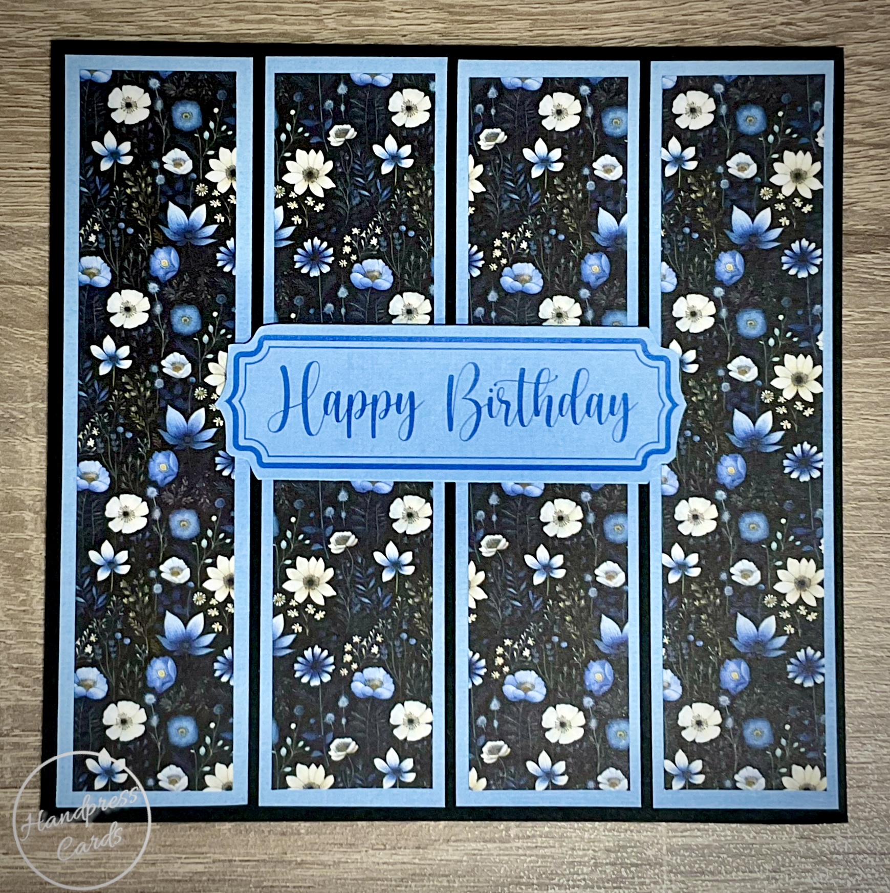 Blue floral greeting card on black cardstock. Card Size is 150mm x 150mm Blank inside for your personal message. Add a message and we will post your card with your message. At checkout add the recipients address in the deliver to area. This product is eligible for free postage to yourself or someone else within Australia. https://www.handpresscards.com.au/product/blue-floral-greeting-card/?feed_id=3104&_unique_id=6954aa455988f