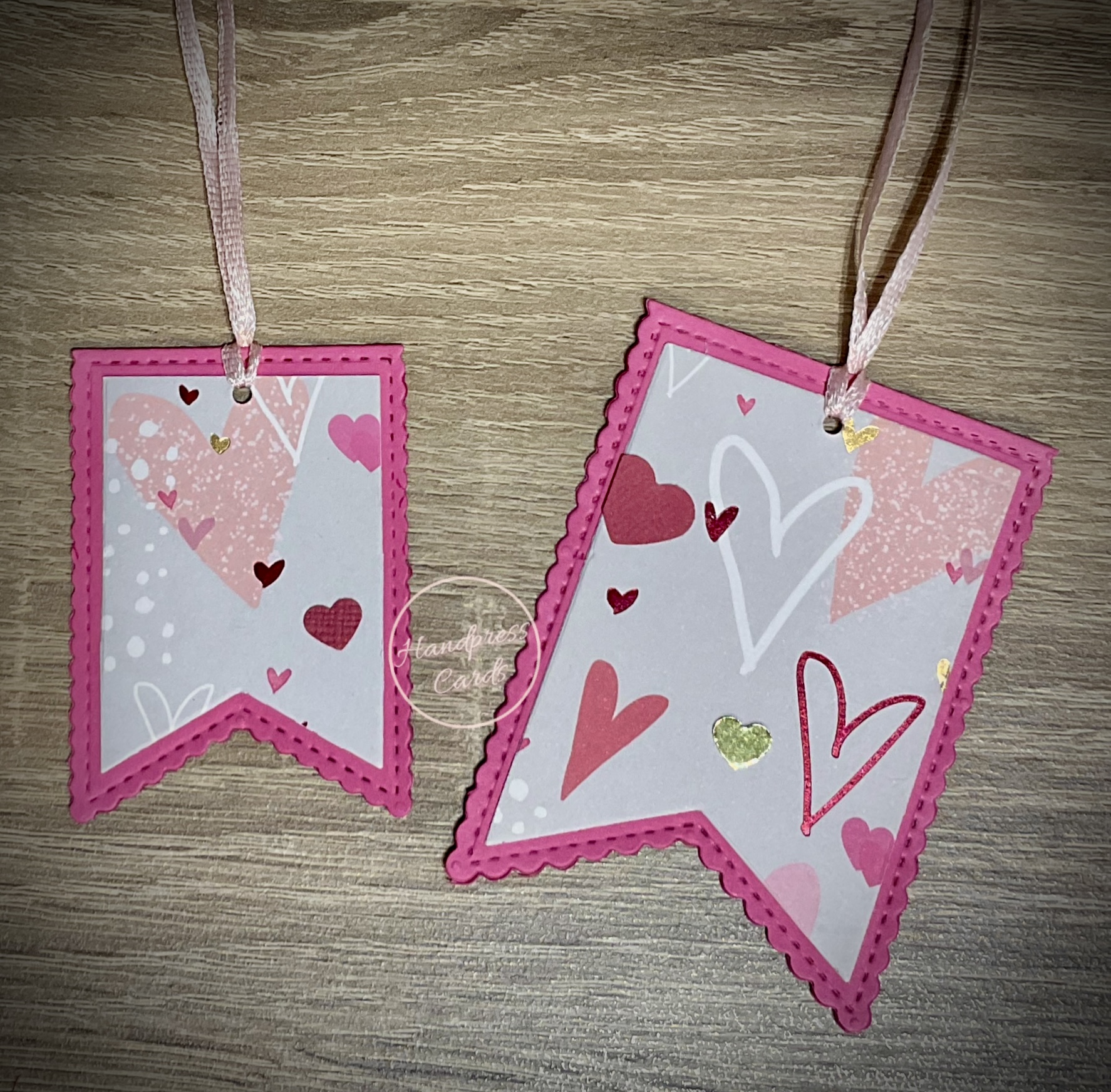 Pack of 2 heart gift tags with pink boarder. Size 1 x 90mm x 65mm and 1 x 70mm x50mm https://www.handpresscards.com.au/product/2-x-heart-gift-tags-on-pink/?feed_id=3202&_unique_id=696c9a2b41d48